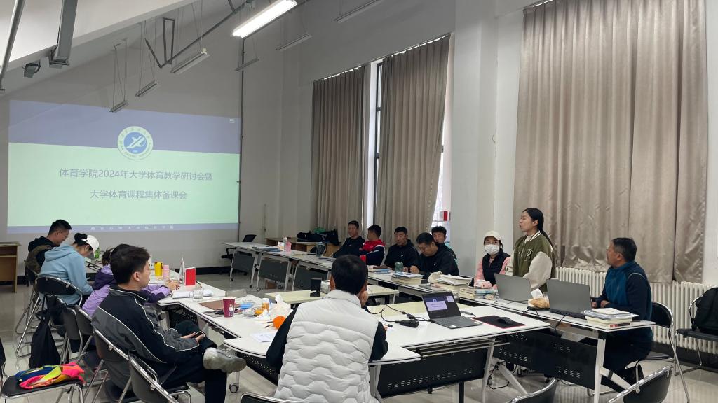 组织全体教师在鄠邑校区东操场二楼研究生教室开展2023-2024学年春季学期体育教学研讨会暨《大学体育》《社会体育》集体备课会。本次教育教学研讨会由社会体育指导与管理专业教研室主任胥山、大学体育教研室主任刘丹青主持。