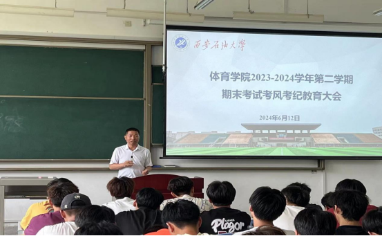 随后,焦龙老师向全体学生进行了深入的考风考纪教育,着重强调了遵守考试纪律的重要性。他根据《西安石油大学学生考试违纪处理规定》,明确传达了学校对考试违纪行为采取的零容忍态度,详细阐述了违纪行为的具体处理措施,使全体学生充分理解并遵守考试规则,维护学术诚信和考试的公正性。