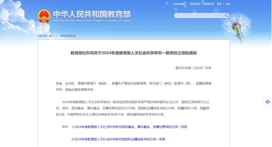 近日,教育部社会科学司公布了《教育部社科司关于2024年度教育部人文社会科学研究一般项目立项的通知》(教社科司函〔2024〕56号),万博体育