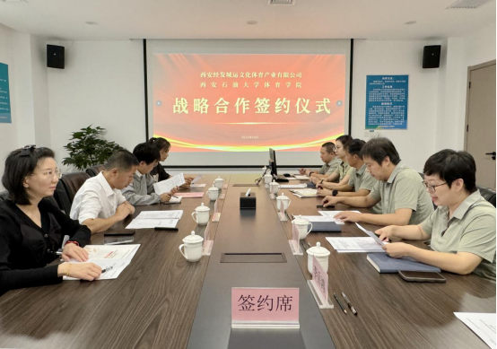 党总支书记苟毅飞一行赴西安经发城运文化体育产业有限公司走访交流,并举行合作框架协议和校外实习实践基地共建协议签约仪式。西安经发城运文化体育产业有限公司党支部书记、副总经理吴飞鹏,副总经理李婵娟及各部门经理;万博体育