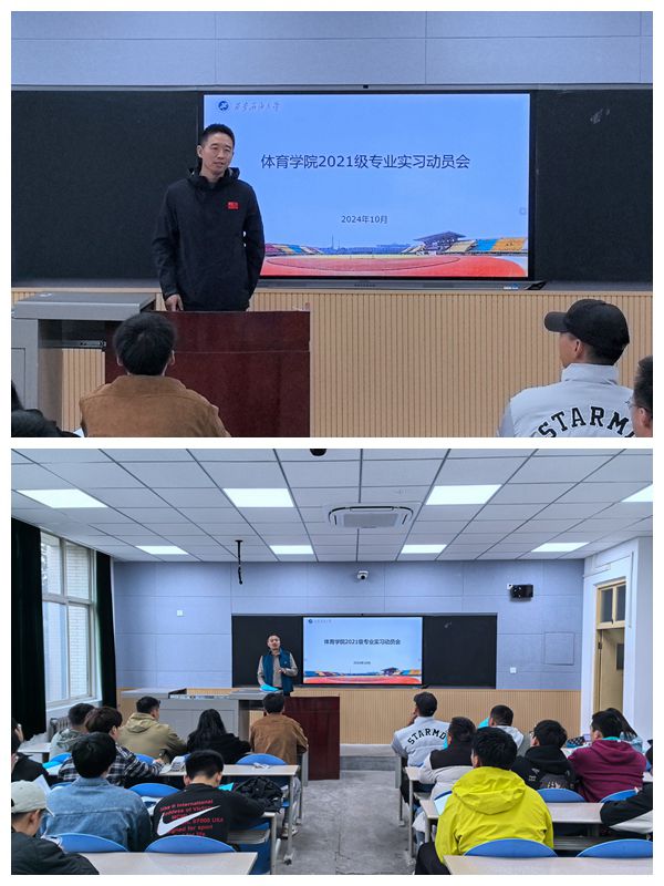 向即将踏上实习征程的同学们表示热烈祝贺和殷切期望。他谈到,实习是理论知识与实践技能相结合的关键环节,对于提升同学们的专业素养和综合能力具有重要意义。随后,李寿邦院长从思想教育的角度出发,对同学们进行了深刻的实习动员。他指出,实习期间同学们的身份不仅是学生,更是体育精神的传播者和体育事业的接班人,希望同学们能够保持良好的品德修养,展现体育人的风采,与实习单位建立和谐的合作关系,为万博体育