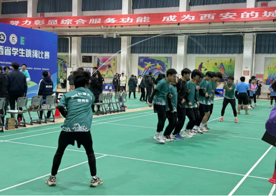 12月15日,由陕西省学生体育协会和陕西省民俗体育协会主办的“2024年陕西省学生跳绳比赛”, 大学组的比赛在西安文理万博体育
