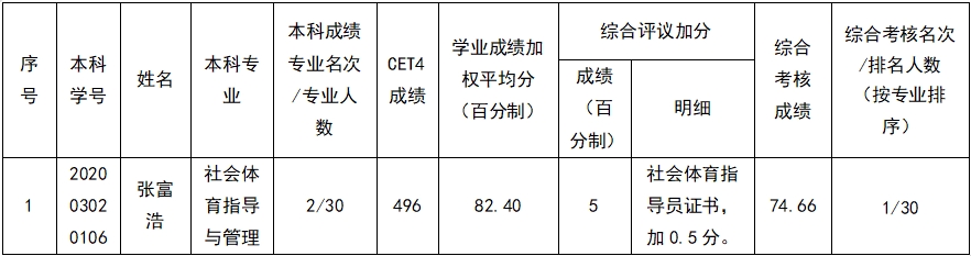 推免生综合评议加分实施细则(试行)》。在广泛宣传动员、学生本人申请、民主推荐、公开评选的基础上,推免工作领导小组本着公开、公平、公正的原则,严格遵循推荐条件,确定拟推荐人员公示名单:
