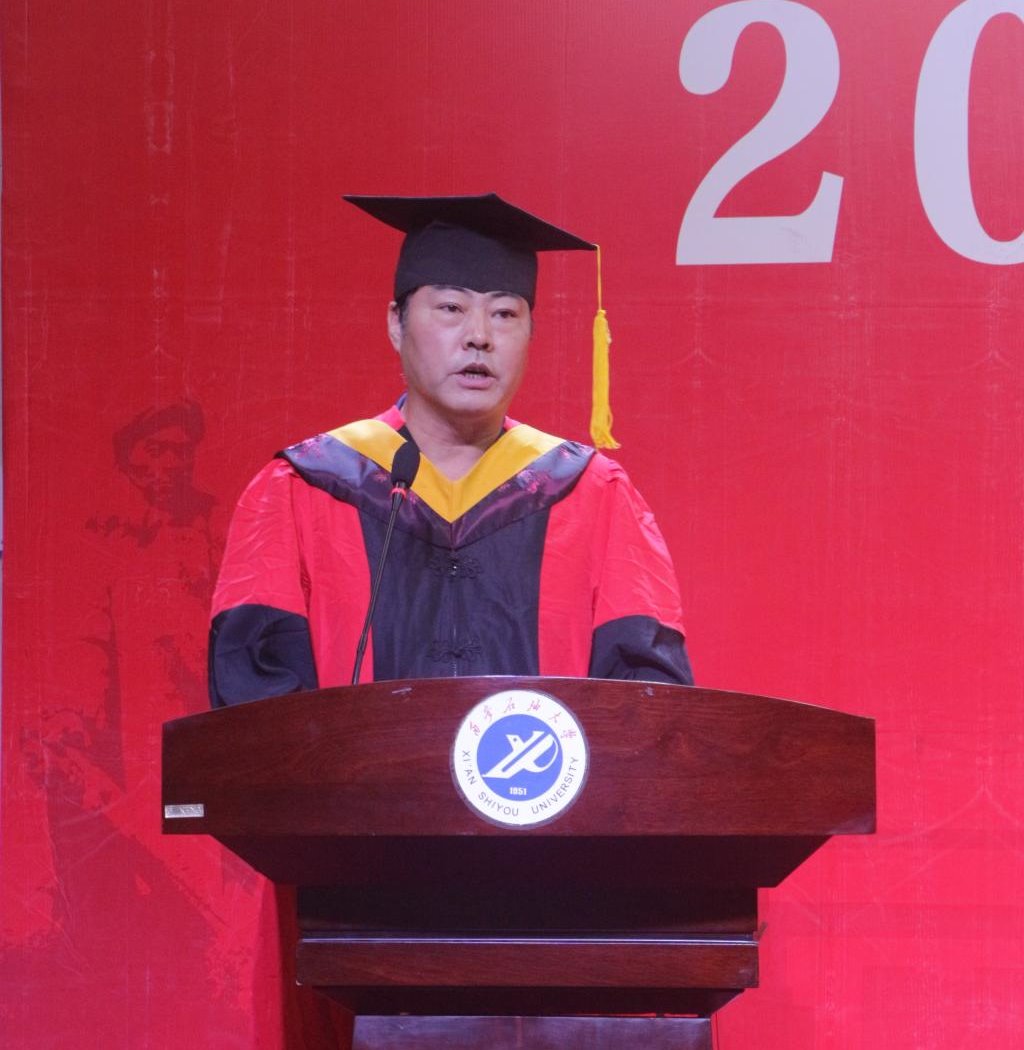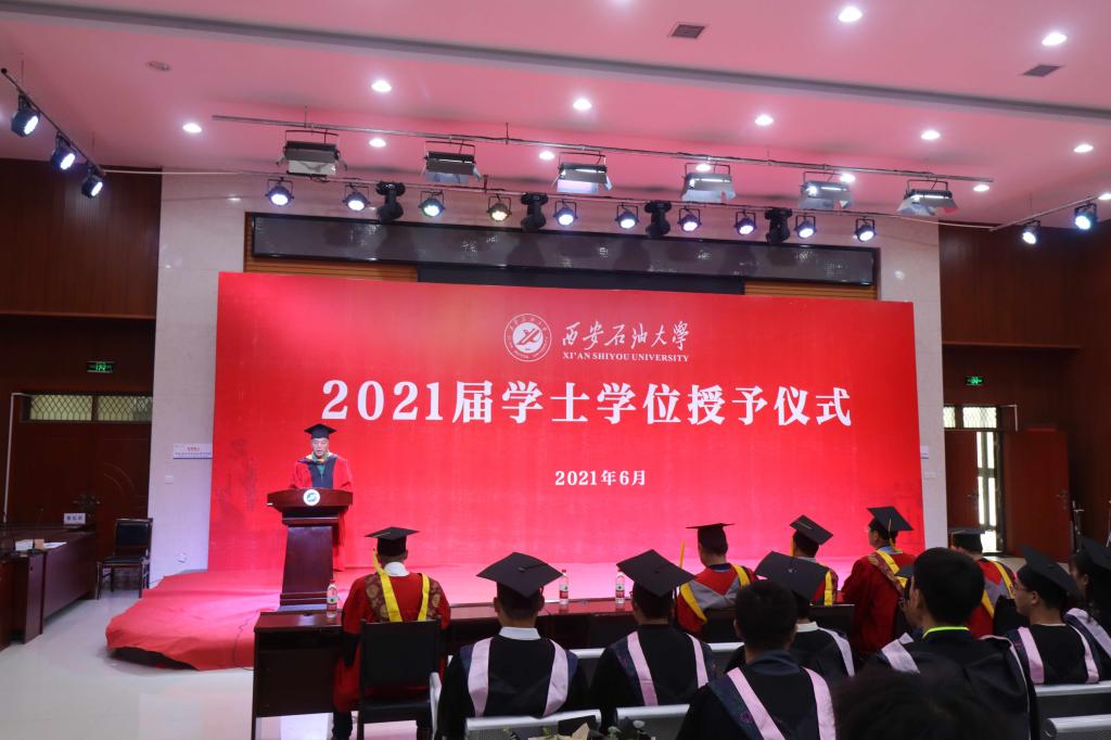 体育系党总支书记倪振文宣读了学士学位授予决定,根据《中华人民共和国学位条例》《西安石油大学学士学位授予工作实施细则》等,授予刘锡等27名同学教育学学士学位。